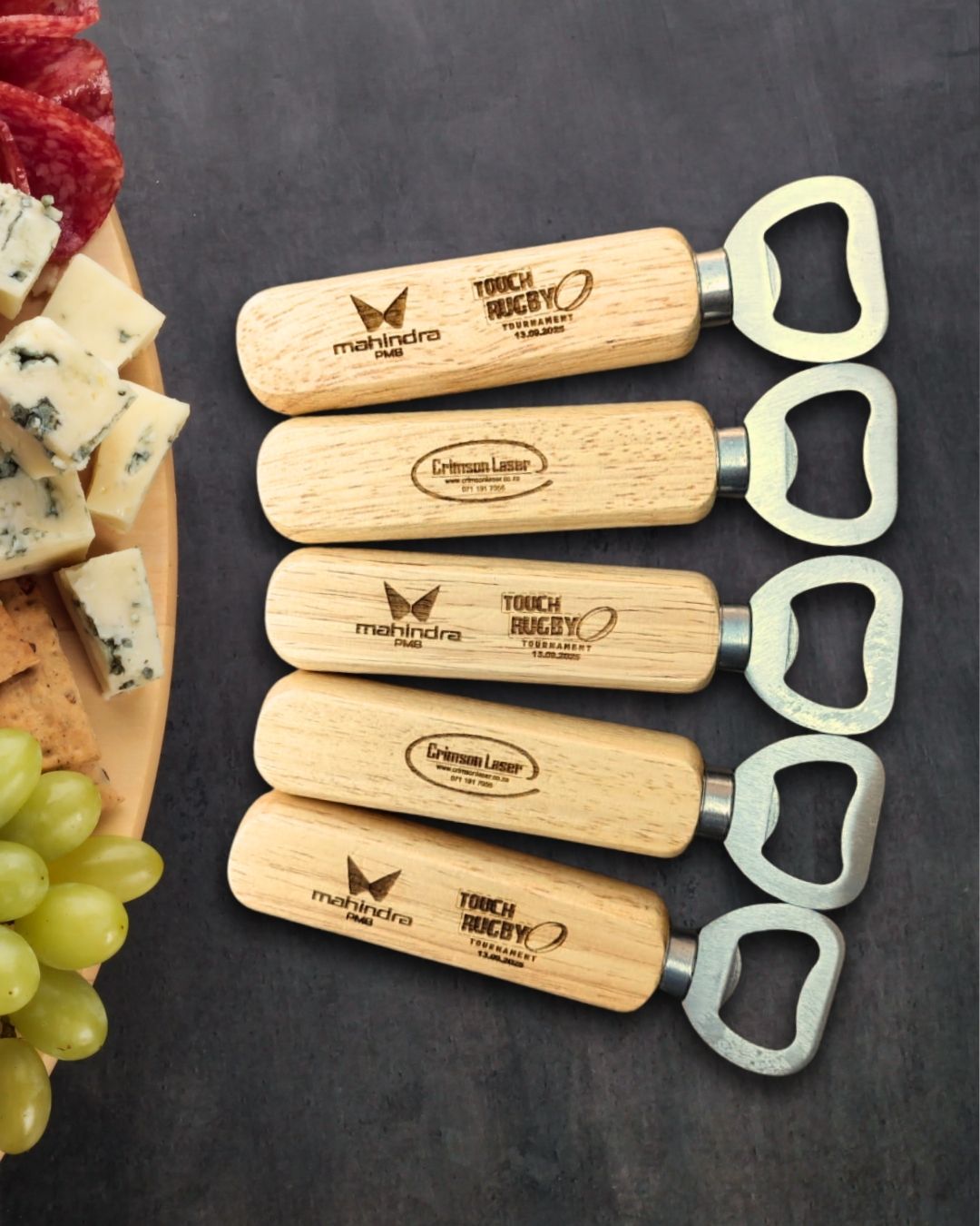 Perfect for personalised gifts, wedding favours, or corporate branding, each opener is engraved with care by Crimson Laser, KZN Midlands.